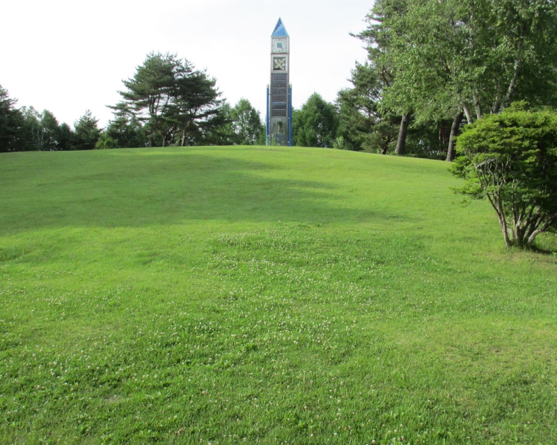 時計台が目印の芝生の丘で、お弁当を食べたり寝転がって空を眺めてみてはいかがでしょうか?
